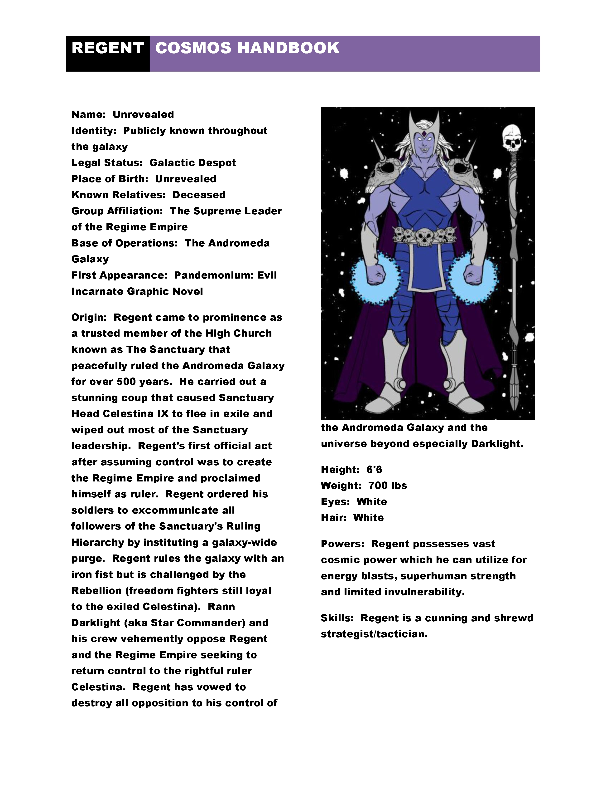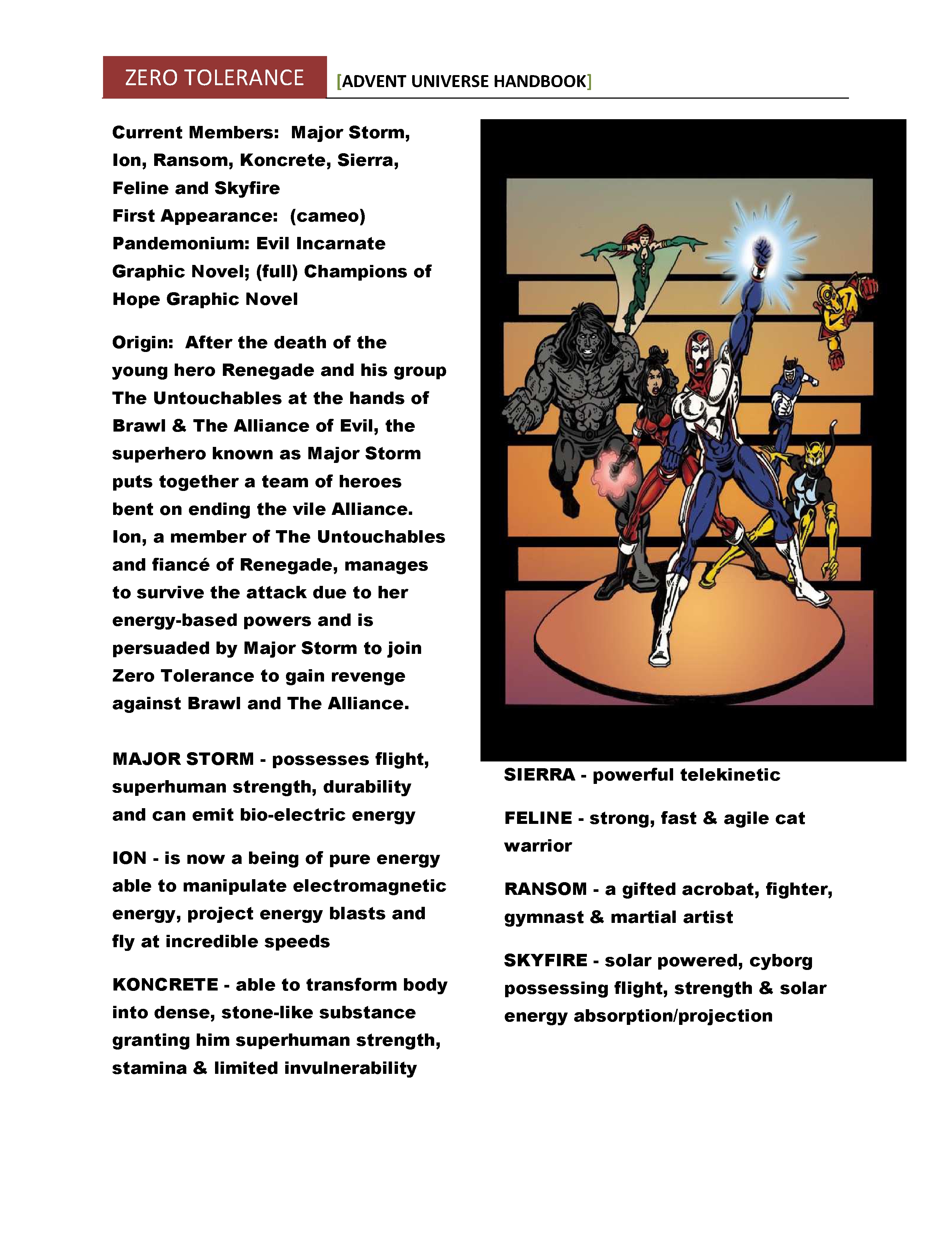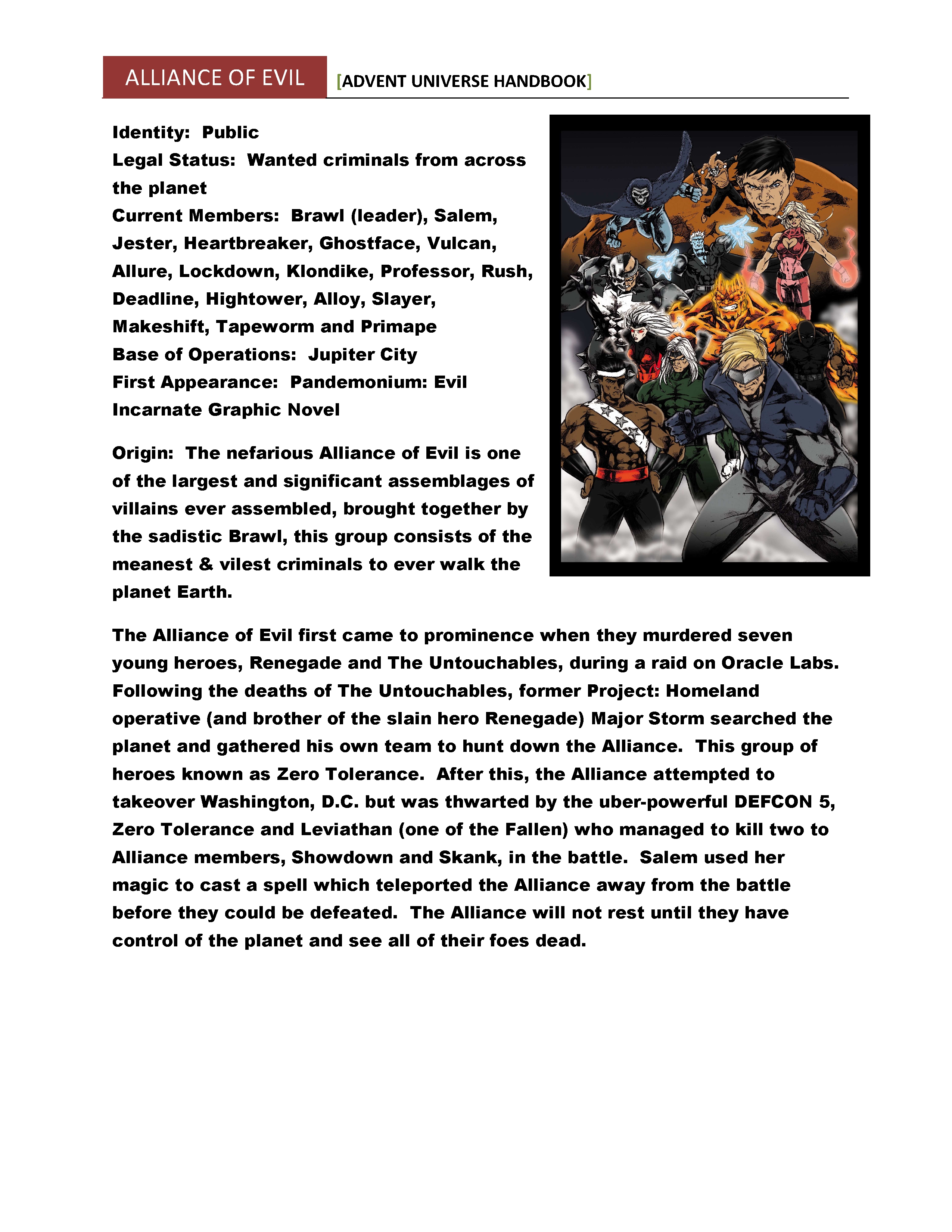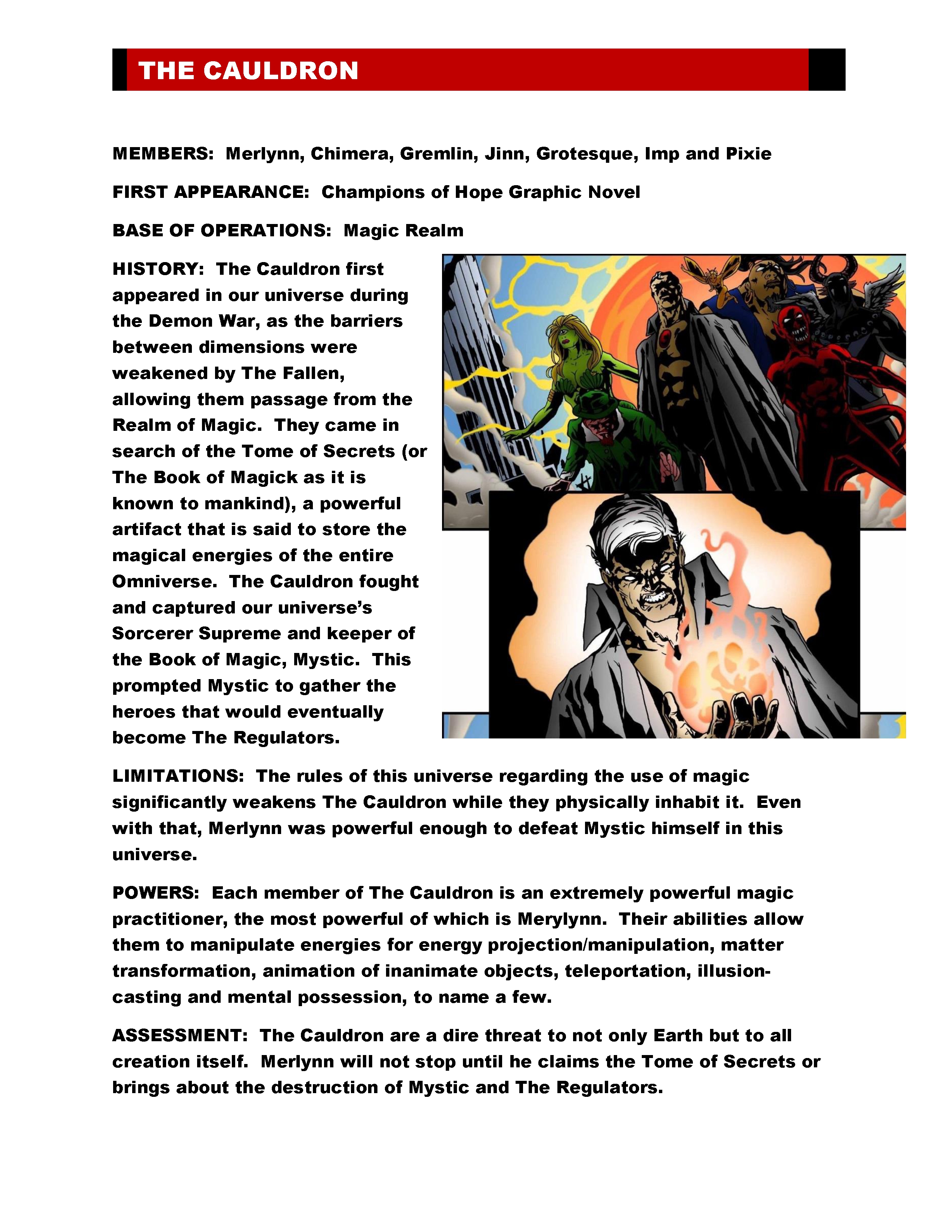 THE REGULATORS chronicles the adventures of Advent's most powerful super team – All American, Charity, Titan, Magnum and others join together to stop a dark threat from Merlynn and The Cauldron from destroying the Advent Universe!